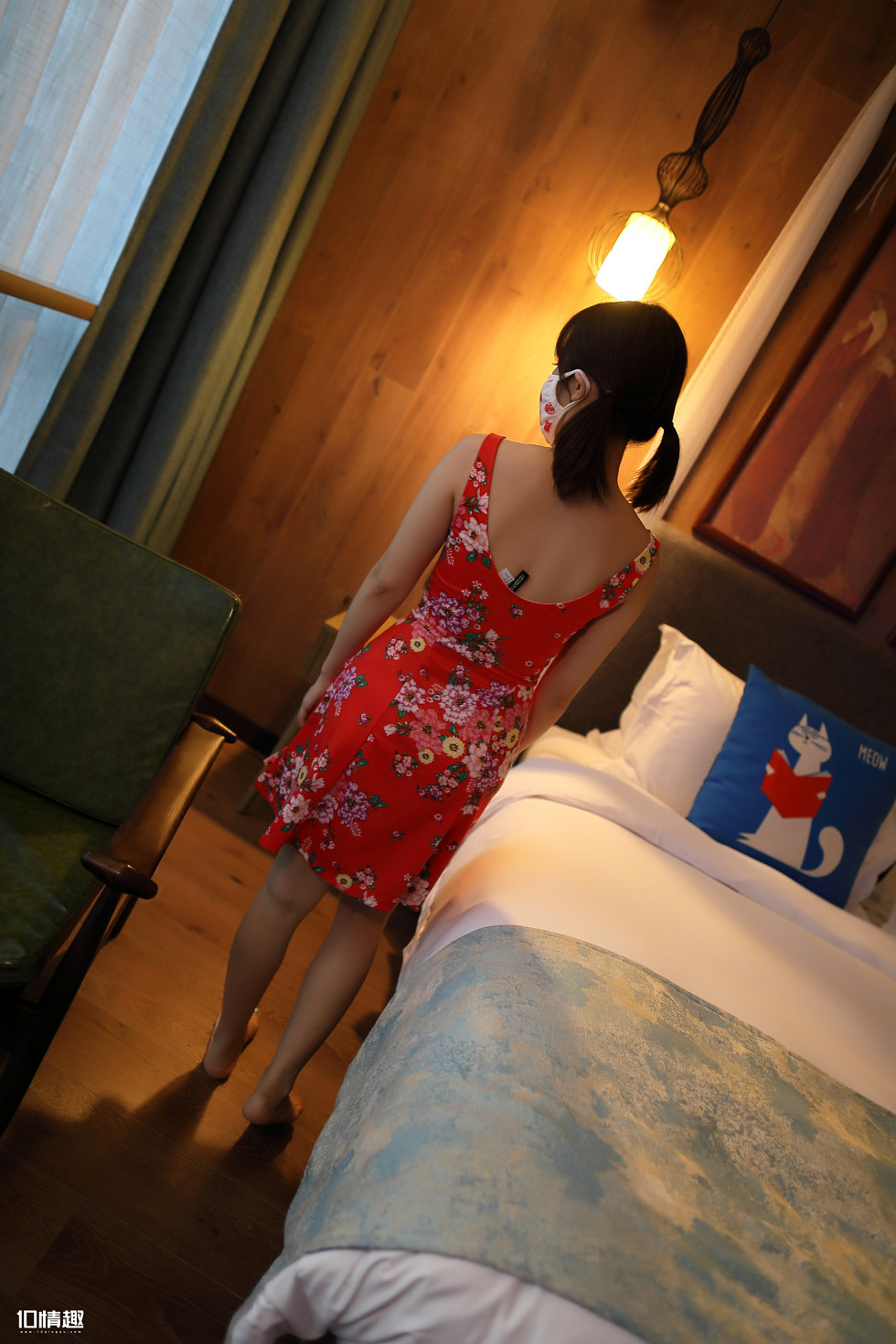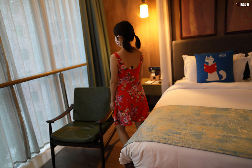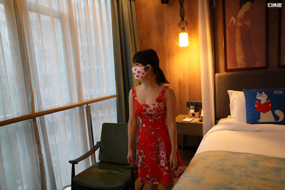 ROSI口罩系列NO.814_红色连衣裙美女酒店床上撩人诱惑写真