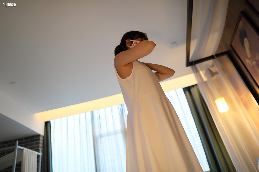 ROSI口罩系列NO.817_白色连身裙马尾辫mm红色内裤性感写真